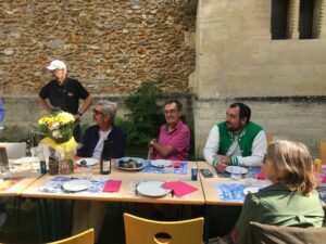 Nous étions plus de vingt, artisans du chantier Ré-Jouy Toit 2, autres professions, membres de la commission travaux et Anne, pour encourager et remercier tous ceux qui contribuent à ce projet qui avance de belle façon. Bravo aux cuisinières et cuisiniers, à ceux qui ont dressé les tables, aux gens « des cuisines » comme « de la salle » : efficacité et bonne humeur !