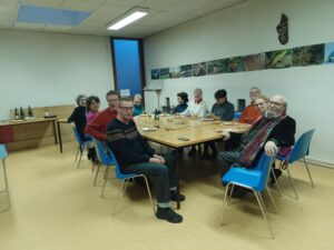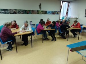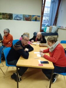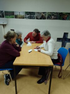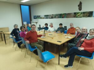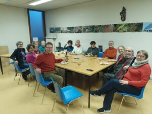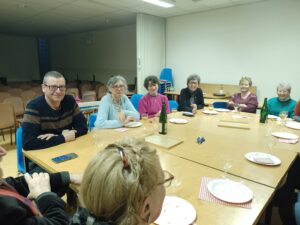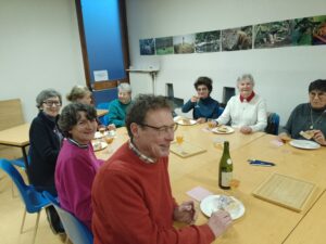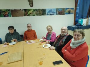 Les gagnants sont Mireille et Bruno qui ont reçu des truffes et un cœur en dentelle. Notre pasteure Anne est arrivée un peu plus tard juste à temps pour déguster la galette dans une ambiance très conviviale. La fève, une amande fut mangée par Maria qui reçut la couronne de reine.